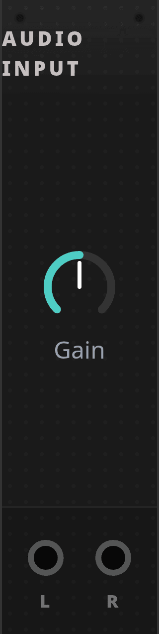 Audio Input brings live stereo audio from your microphone or interface into the rack and lets you trim the incoming level before patching it elsewhere.