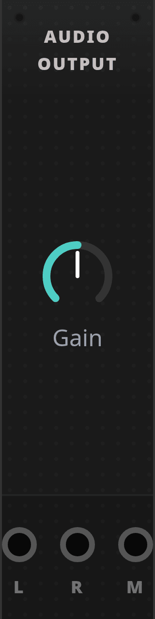 Audio Output is the final destination for your patch. It accepts stereo or mono audio, applies final output conditioning, and sends the result to your speakers or headphones.