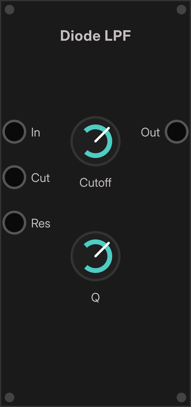 Diode LPFis a single-input, single-output analog-style lowpass filter.- It exposes dedicated CV inputs for