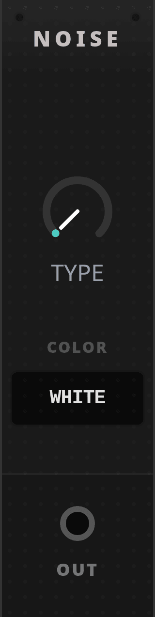 Noise is a compact noise source with six selectable colors, ranging from flat-spectrum white noise to brighter or darker filtered variants.