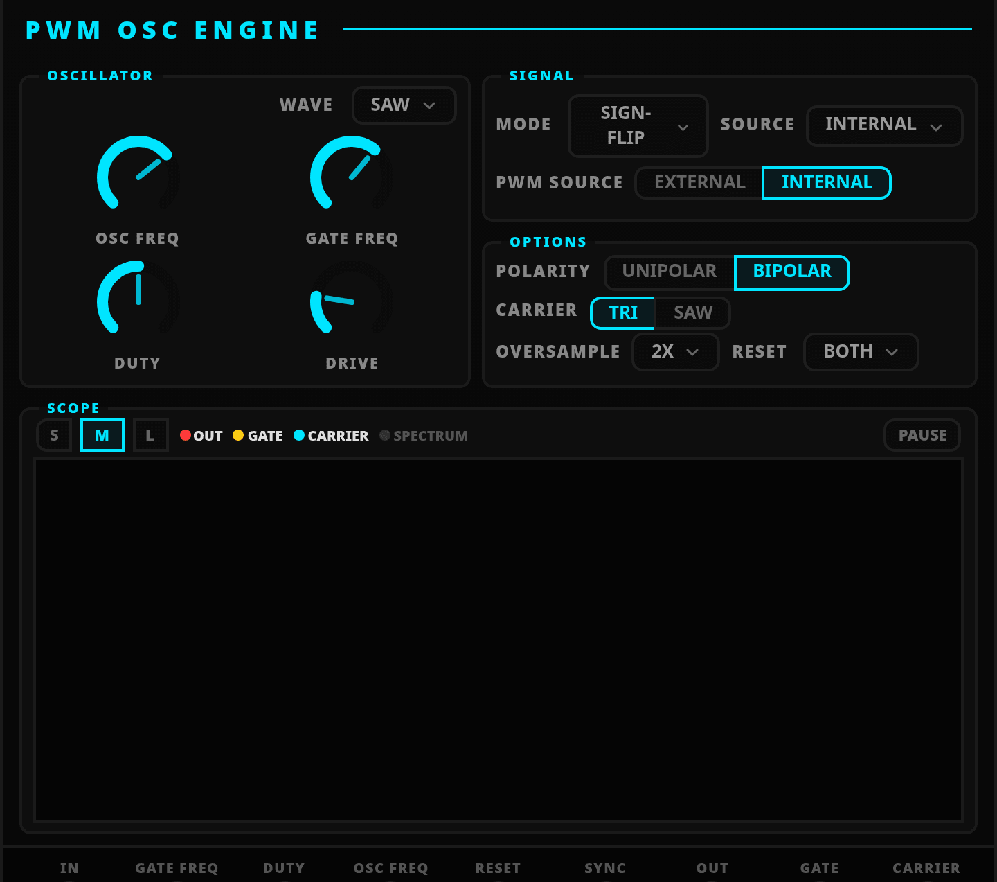 Complete manual and reference for the PWM Osc Engine module.