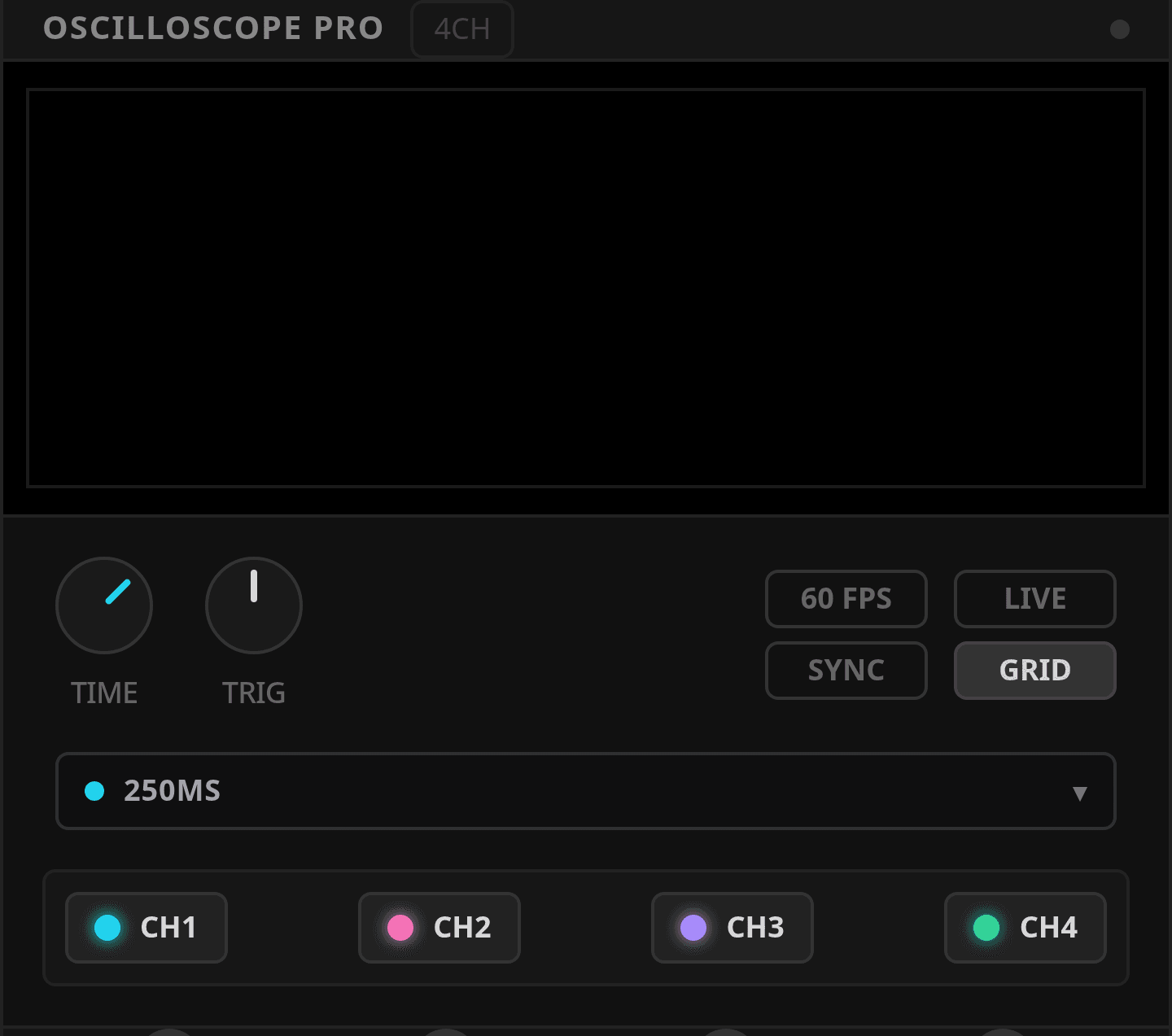 CH1toCH4buttons let you include or hide channels in the display.